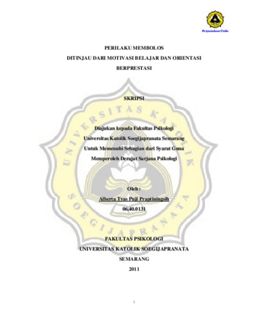 PRAPTININGSIH, ALBERTA TYAS PUJI (2011) PERILAKU MEMBOLOS DITINJAU DARI MOTIVASI BELAJAR DAN ORIENTASI BERPRESTASI. Other thesis, Prodi Psikologi Unika Soegijapranata Semarang.