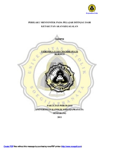 CHANDRAWATI, VERONIKA LUQI (2011) PERILAKU MENYONTEK PADA PELAJAR DITINJAU DARI KETAKUTAN AKAN KEGAGALAN. Other thesis, Prodi Psikologi Unika Soegijapranata Semarang.