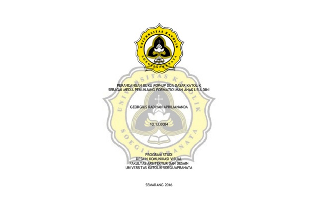 APRILIANANDA, GEORGIUS RADIYAN (2016) PERANCANGAN BUKU POP-UP DOA DASAR KATOLIK SEBAGAI MEDIA PENUNJANG FORMATIO IMAN ANAK USIA DINI. Other thesis, Fakultas Arsitektur Dan Desain.