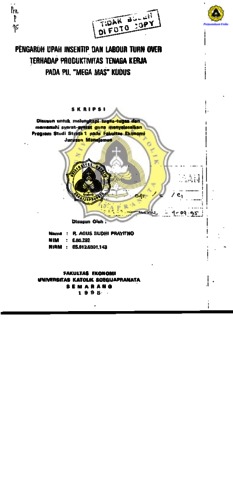 PENGARUH UPAH INSENTIP DAN LABOUR TURN OVER TERHADAP PRODUKTIVITAS TENAGA KERJA PADA PU. "MEGA MAS" KUDUS