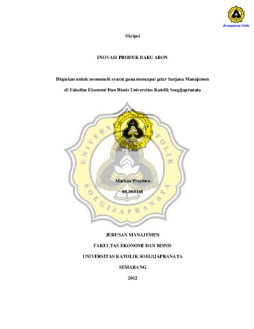 Prayitno, Markus (2012) INOVASI PRODUK BARU ABON. Other thesis, Prodi Manajemen Unika Soegijpranata.