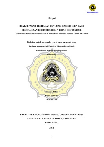 Petricia, Sisca (2012) REAKSI PASAR TERHADAP PENGUMUMAN DIVIDEN PADA PERUSAHAAN BERTUMBUH DAN TIDAK BERTUMBUH (Studi Pada Perusahaan Manufaktur di Bursa Efek Indonesia Periode Tahun 2007-2009). Other thesis, Prodi Akuntansi Unika Soegijapranata.