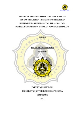 DEWI, DIYAH PRAMESTI (2011) HUBUNGAN ANTARA PERSEPSI TERHADAP SUPERVISI DENGAN KEPATUHAN MENJALANKAN PERATURAN KESEHATAN DAN KESELAMATAN KERJA (K-3) PADA PEKERJA PT. PERTAMINA INSTALASI PENGAPON SEMARANG. Other thesis, Prodi Psikologi Unika Soegijapranata Semarang.