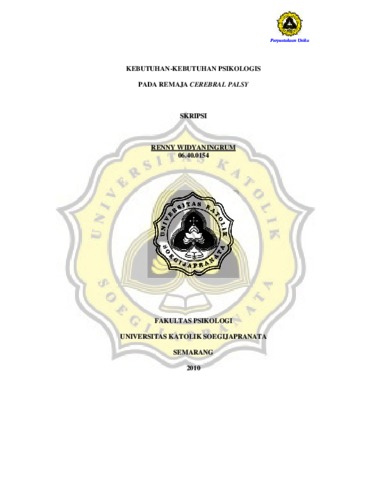WIDYANINGRUM, RENNY (2010) KEBUTUHAN-KEBUTUHAN PSIKOLOGIS PADA REMAJA CEREBRAL PALSY. Other thesis, Prodi Psikologi Unika Soegijapranata Semarang.