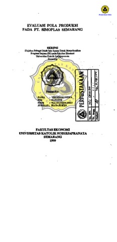 DINNA, THERESIA (1999) EVALUASI POLA PRODUKSI PADA PT. SIMOPLAS SEMARANG. Other thesis, Prodi Manajemen Unika Soegijapranata.