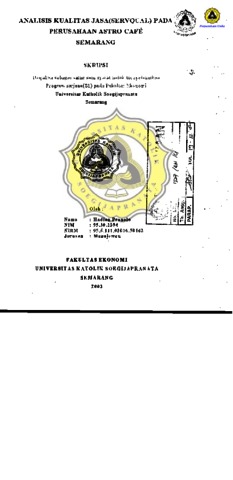PRANOTO, HADIAN (2002) ANALISIS KUALITAS JASA (SERVQUAL) PADA PERUSAHAAN ASTRO CAFE SEMARANG. Other thesis, Prodi Manajemen Unika Soegijapranata.