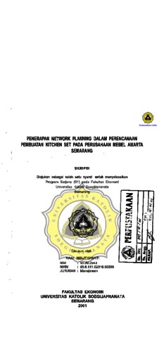 MELITIOWATI, NANI (2001) PENERAPAN NETWORK PLANNING DALAM PERENCANAAN PEMBUATAN KITCHEN SET PADA PERUSAHAAN MEBEL AMARTA SEMARANG. Other thesis, Prodi Manajemen Unika Soegijapranata.