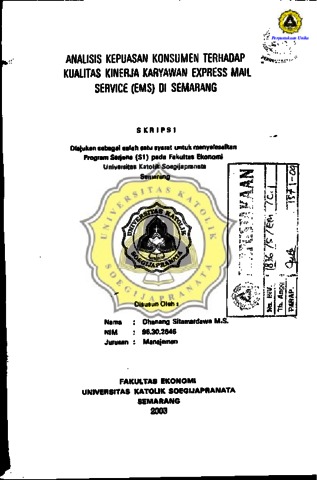 SITAMARDAWA M.S, DHANANG (2003) ANALISIS KEPUASAN KONSUMEN TERHADAP KUALITAS KINERJA KARYAWAN EXPRESS MAIL SERVICE (EMS) DI SEMARANG. Other thesis, Prodi Manajemen Unika Soegijapranata.