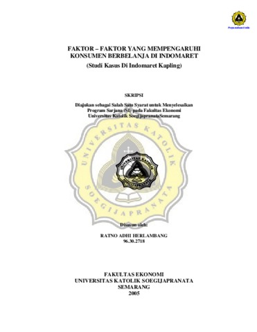 HERLAMBANG, RATNO ADHI (2005) FAKTOR-FAKTOR YANG MEMPENGARUHI KONSUMEN BERBELANJA DI INDOMARET (STUDI KASUS DI INDOMARET KAPLING). Other thesis, Prodi Manajemen Unika Soegijapranata.