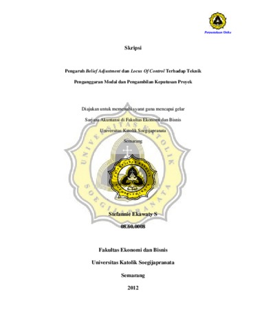 EKAWATY S., STEFANNIE (2012) Pengaruh Belief Adjustment dan Locus Of Control Terhadap Teknik Penganggaran Modal dan Pengambilan Keputusan Proyek. Other thesis, Prodi Akuntansi Unika Soegijapranata.