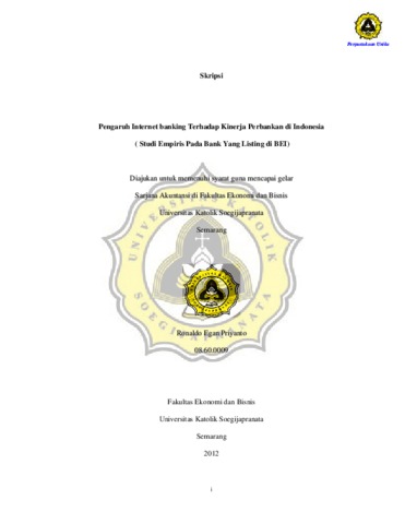 PRIYANTO, RENALDO EGAN (2012) Pengaruh Internet banking Terhadap Kinerja Perbankan di Indonesia ( Studi Empiris Pada Bank Yang Listing di BEI). Other thesis, Prodi Akuntansi Unika Soegijapranata.