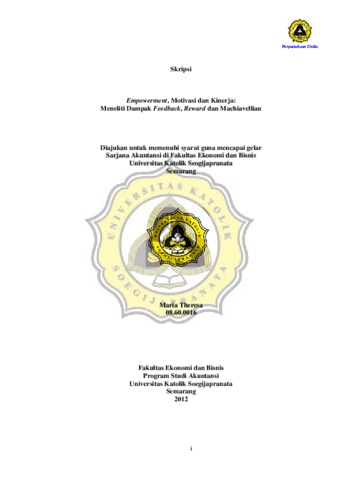 THERESA, MARIA (2012) Empowerment, Motivasi dan Kinerja: Meneliti Dampak Feedback, Reward dan Machiavellian. Other thesis, Prodi Akuntansi Unika Soegijapranata.