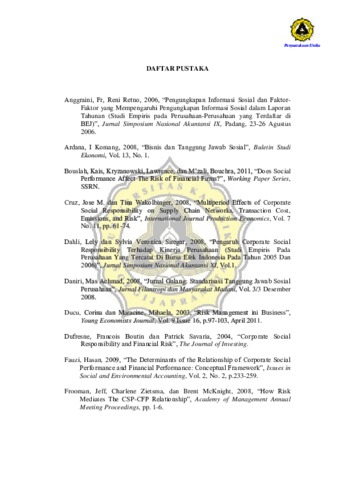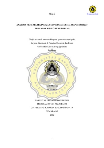 MUSTIKA, TANTI (2012) ANALISIS PENGARUH KINERJA CORPORATE SOCIAL RESPONSIBILITY TERHADAP RISIKO PERUSAHAAN. Other thesis, Prodi Akuntansi Unika Soegijapranata.