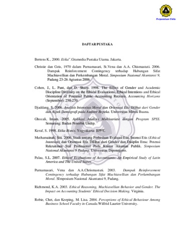 ANDRIANA, MEGA (2013) PERBEDAAN EVALUASI ETIS, INTENSI ETIS, ORIENTASI ETIS DAN SIFAT MACHIAVELLIAN DILIHAT DARI GENDER DAN DISIPLIN ILMU PADA AUDITOR BPK RI PERWAKILAN PROVINSI JAWA TENGAH. Other thesis, Prodi Akuntansi Unika Soegijapranata.