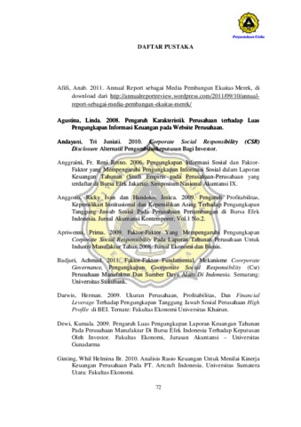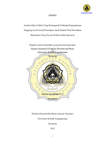 ISMARDHINRI A.T, MONICA (2012) Analisis Faktor-Faktor Yang Berpengaruh Terhadap Pengungkapan Tanggung Jawab Sosial Perusahaan: Studi Empiris Pada Perusahaan Manufaktur Yang Tercatat Di Bursa Efek Indonesia. Other thesis, Prodi Akuntansi Unika Soegijapranata.