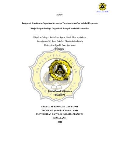 BIANTORO, LINDA CHANDRA (2012) Pengaruh Komitmen Organisasi terhadap Turnover Intention melalui Kepuasan Kerja dengan Budaya Organisasi Sebagai Variabel Anteseden. Other thesis, Prodi Akuntansi Unika Soegijapranata.
