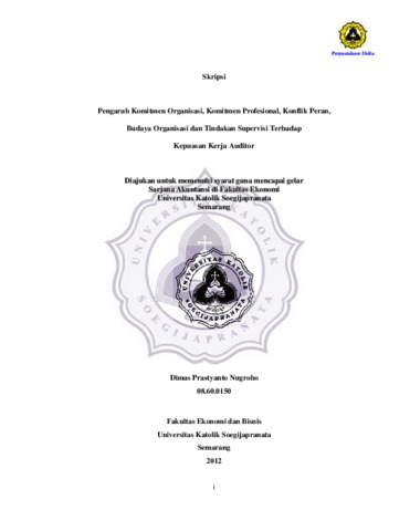 NUGROHO, DIMAS PRASETYANTO (2012) Pengaruh Komitmen Organisasi, Komitmen Profesional, Konflik Peran, Budaya Organisasi dan Tindakan Supervisi Terhadap Kepuasan Kerja Auditor. Other thesis, Prodi Akuntansi Unika Soegijapranata.