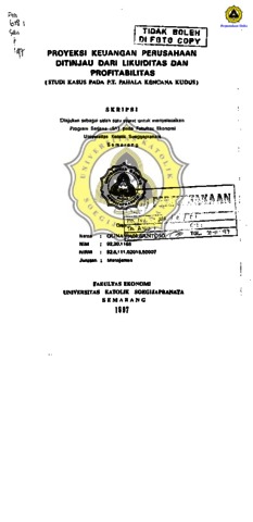 SANTOSO, GUNAWAN (1997) PROYEKSI KEUANGAN PERUSAHAAN DITINJAU DARI LIKUIDITAS DAN PROFITABILITAS (STUDI KASUS PADA P.T. PAHALA KENCANA KUDUS). Other thesis, Universitas Katolik Soegijapranata Semarang.