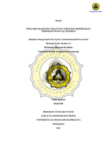 RISTIANTI, NADIA (2012) PENGARUH RASIO KEUANGAN DAN STRUKTUR KEPEMILIKAN TERHADAP FINANCIAL DISTRESS. Other thesis, Prodi Akuntansi Unika Soegijapranata.