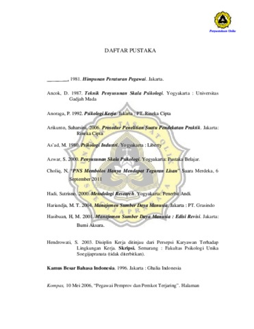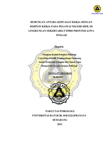 PUSPITORINI, TRIANA (2012) HUBUNGAN ANTARA KEPUASAN KERJA DENGAN DISIPLIN KERJA PADA PEGAWAI NEGERI SIPIL DI LINGKUNGAN SEKERTARIAT DPRD PROVINSI JAWA TENGAH. Other thesis, Prodi Psikologi Unika Soegijapranata.