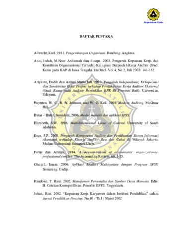 Poerjanto, Indra Satria (2012) Pengaruh Independensi, Kompetensi, Sensitivitas Etika Profesi, Locus of Control Internal, Komitmen Organisasional dan Kepuasan Kerja terhadap Kinerja Auditor BPK. Other thesis, Prodi Akuntansi Unika Soegijapranata.