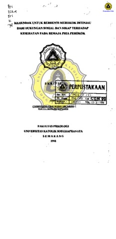 ARINI, CHRISTIANA EKO WIDHI SRI (1998) KEHENDAK UNTUK BERHENTI MEROKOK DITINJAU DARI DUKUNGAN SOSIAL DAN SIKAP TERHADAP KESEHATAN PADA REMAJA PRIA PEROKOK. Other thesis, Prodi Psikologi Unika Soegijapranata.