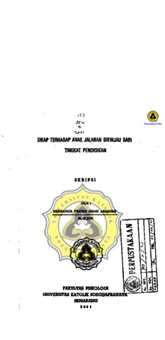 ASMORO, BERNADUS PROBO SIDHI (2001) SIKAP TERHADAP ANAK JALANAN DITINJAU DARI TINGKAT PENDIDIKAN. Other thesis, PRODI PSIKOLOGI UNIKA SOEGIJAPRANATA.