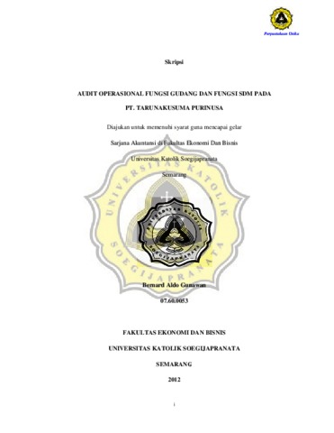 Gunawan, Bernard Aldo (2012) AUDIT OPERASIONAL FUNGSI GUDANG DAN FUNGSI SDM PADA PT. TARUNAKUSUMA PURINUSA. Other thesis, PRODI PSIKOLOGI UNIKA SOEGIJAPRANATA.
