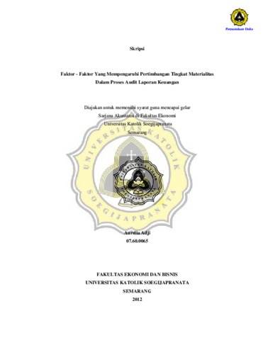 ADJI, AURELIA (2012) FAKTOR-FAKTOR YANG MEMPENGARUHI PERTIMBANGAN TINGKAT MATERIALITAS DALAM PROSES AUDIT LAPORAN KEUANGAN. Other thesis, Prodi Akuntansi Unika Soegijapranata.