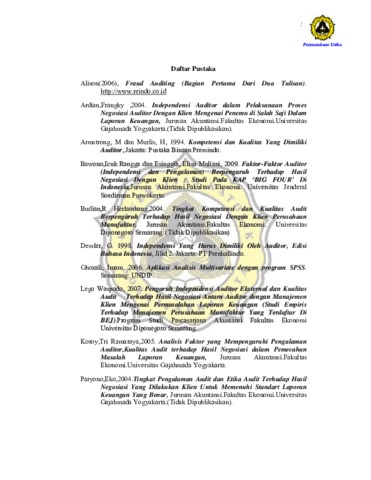 RAHARDIAN, GURUH (2012) PENGARUH TINGKAT KOMPETENSI,INDEPENDENSI,DAN PENGALAMAN AUDITOR TERHADAP HASIL NEGOSIASI ANTARA AUDITOR DENGAN MANAJEMEN KLIEN MENGENAI PERMASALAHAN LAPORAN KEUANGAN. Other thesis, Prodi Akuntansi Unika Soegijapranata.