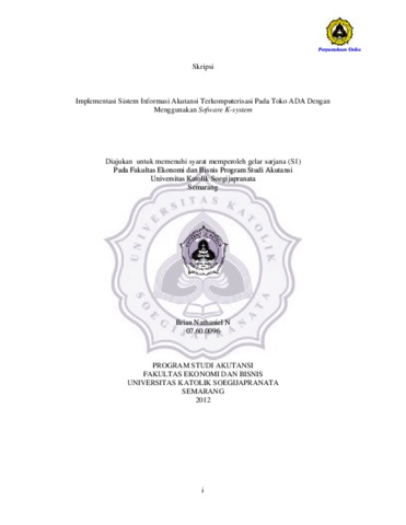 Nathaniel, Brian (2012) IMPLEMENTASI SISTEM INFORMASI AKUNTANSI TERKOMPUTERISASI PADA TOKO ADA DENGAN MENGGUNAKAN SOFTWARE K-SYSTEM. Other thesis, Prodi Akuntansi Unika Soegijapranata.
