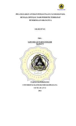 WAHYUNINGSIH, SAPUTRI UJI (2011) PELANGGARAN ATURAN PENGGUNAAN FACEBOOK PADA REMAJA DITINJAU DARI PERSEPSI TERHADAP PENERIMAAN ORANGTUA. Other thesis, Prodi Psikologi Unika Soegijapranata Semarang.