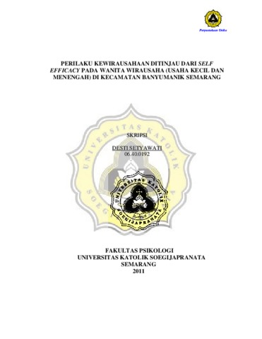 SETYAWATI, DESTI (2011) PERILAKU KEWIRAUSAHAAN DITINJAU DARI SELF EFFICACY PADA WANITA WIRAUSAHA (USAHA KECIL DAN MENENGAH) DI KECAMATAN BANYUMANIK SEMARANG. Other thesis, Prodi Psikologi Unika Soegijapranata Semarang.