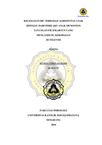 HARDINI, MYRNA CHRIS (2010) KECEMASAN IBU TERHADAP AGRESIVITAS ANAK DITINJAU DARI PERILAKU ANAK MENONTON TAYANGAN FILM KARTUN YANG MENGANDUNG KEKERASAN DI TELEVISI. Other thesis, Prodi Psikologi Unika Soegijapranata Semarang.