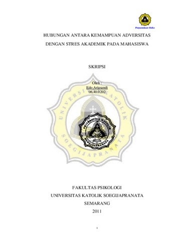 ARIASANDI, EDO (2011) HUBUNGAN ANTARA KEMAMPUAN ADVERSITAS DENGAN STRES AKADEMIK PADA MAHASISWA. Other thesis, Prodi Psikologi Unika Soegijapranata Semarang.