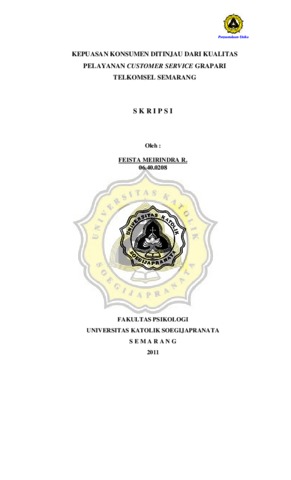 MEIRINDRA R., FEISTA (2011) KEPUASAN KONSUMEN DITINJAU DARI KUALITAS PELAYANAN CUSTOMER SERVICE GRAPARI TELKOMSEL SEMARANG. Other thesis, Prodi Psikologi Unika Soegijapranata Semarang.