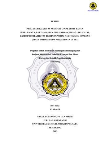 PENGARUH KUALITAS AUDITOR, OPINI AUDIT TAHUN SEBELUMNYA, PERTUMBUHAN PERUSAHAAN, RASIO LIKUIDITAS, RASIO PROFITABILITAS TERHADAP OPINI AUDIT GOING CONCERN (STUDI EMPIRIS PADA PERUSAHAAN DI BEI)