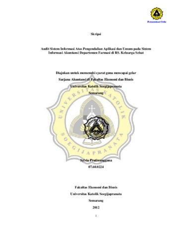 Pratiwanggana, Sylvia (2012) Audit Sistem Informasi Atas Pengendalian Aplikasi dan Umum pada Sistem Informasi Akuntansi Departemen Farmasi di RS. Keluarga Sehat. Other thesis, Prodi Akuntansi Unika Soegijapranata.