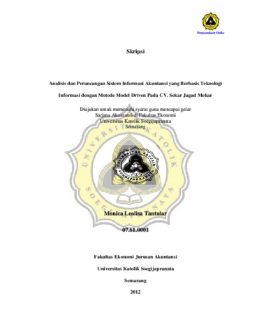 Tantular, Monica Leolisa (2012) Analisis dan Perancangan Sistem Informasi Akuntansi yang Berbasis Teknologi Informasi dengan Metode Model Driven Pada CV. Sekar Jagad Mekar. Other thesis, Prodi Akuntansi Unika Soegijapranata.