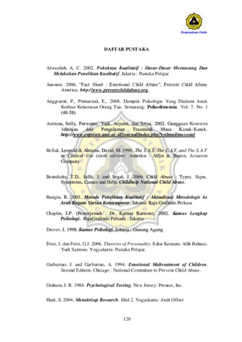 HAYATININGTYAS, OCTAVIA (2011) DAMPAK PSIKOLOGIS ANAK KORBAN KEKERASAN DALAM KELUARGA. Other thesis, Prodi Psikologi Unika Soegijapranata Semarang.