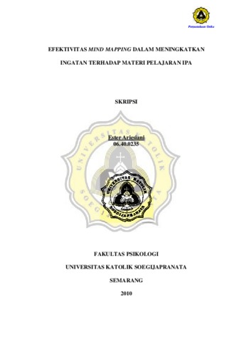 ARIESIANI, ESTER (2010) EFEKTIVITAS MIND MAPPING DALAM MENINGKATKAN INGATAN TERHADAP MATERI PELAJARAN IPA. Other thesis, Prodi Psikologi Unika Soegijapranata Semarang.