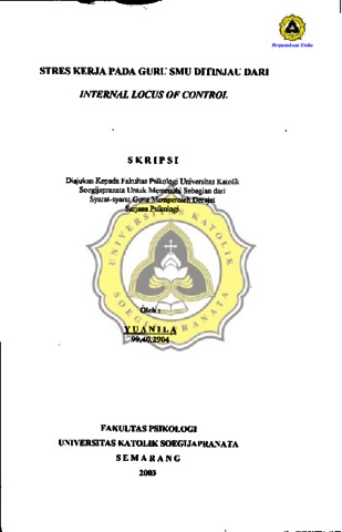 YUANILA, - (2003) STRES KERJA PADA GURU SMU DITINJAU DARI INTERNAL LOCUS OF CONTROL. Other thesis, Prodi Psikologi Unika Soegijapranata Semarang.