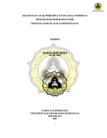 MARVIENDA, DAHLIA (2007) KECEMASAN ANAK PEREMPUAN PADA MASA PUBERTAS MENGHADAPI PERUBAHAN FISIK DITINJAU DARI KUALITAS PERTEMANAN. Other thesis, Prodi Psikologi Unika Soegijapranata Semarang.