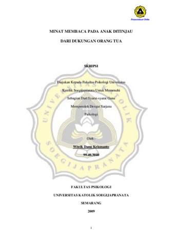 KRISMANTO, WIWIK DANU (2009) MINAT MEMBACA PADA ANAK DITINJAU DARI DUKUNGAN ORANGTUA. Other thesis, Prodi Psikologi Unika Soegijapranata Semarang.