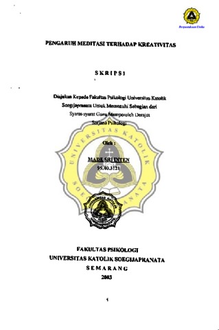 INTEN, MADE SRI (2003) PENGARUH MEDITASI TERHADAP KREATIVITAS. Other thesis, Prodi Psikologi Unika Soegijapranata Semarang.