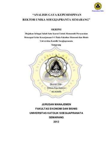 Seputro, Debora Tejo (2008) ANALISIS GAYA KEPEMIMPINAN REKTOR UNIKA SOEGIJAPRANTA SEMARANG. Other thesis, UNIKA SOEGIJAPRANATA.