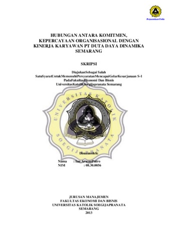 Sumber daya manusia mempunyai peranan penting baik secara perorangan ataupun kelompok, dan merupakan salah satu penggerak utama atas kelancaran jalannya kegiatan usaha, bahkan maju mundurnya perusahaan ditentukan oleh keberadaan dan kemampuan sumber daya manusianya. Untuk itu setiap perusahaan perlu memperhatikan dan mengatur keberadaan karyawannya sebagai usaha meningkatkan kinerja perusahaan ke arah yang lebih baik. Tujuan dari penelitian ini adalah untuk mengetahuihubungankomitmenterhadap kinerja karyawan, untuk mengetahui hubungan kepercayaan organisasionalterhadap kinerja karyawan dan untuk mengetahui persepsi responden yakni karyawan tentang hubungan komitmen, kepercayaan organisasional dan kinerja karyawan PT. DUTADAYA DINAMIKA. Populasi penelitian ini adalah keseluruhan karyawan PT. Duta Daya Dinamika yang memiliki jenjang karir staff, teknisi, manajer sampai kepada owner. Dengan ukuran populasi sebanyak 22 orang, yaitu jumlah seluruh karyawan yang ada dalam perusahaan. Adapun yang dijadikan responden adalah karyawan PT. Duta Daya Dinamika yang telah bekerja minimal 1 tahun, ditambah satu orang atasan atau pemilik perusahaan. Alatanalisis data yang digunakandalampenelitianiniadalahanalisiskorelasi spearman rank, danpengujianhipotesis. Berdasarkanhasilpenelitiandanpembahasandapatdibuatkesimpulansebagaiberikuttidakterdapathubunganpositifantarakomitmenorganisasioaldengankinerjakaryawan,haliniditunjukkandarihasil sig. sebesar 0,223 ≥α (0,05), dengan demikian Ho diterima dan Ha ditolak. Hal ini mengindikasikan semakin besar komitmen organisasional maka tidak berdampak pada kinerja karyawan, terdapat hubungan positif antara kepercayaan organisasional dengan kinerja karyawan, hal ini ditunjukkan dari hasil sig. sebesar 0,026 <α (0,05), dengan demikian Ho ditolak dan Ha diterima. Hal ini mengindikasikan semakin besar kepercayaan organisasional maka kinerja karyawan juga meningkat.