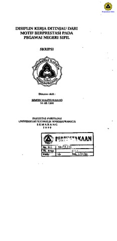 WAHYUWANTO, SIMON (1999) DISIPLIN KERJA DITINJAU DARI MOTIF BERPRESTASI PADA PEGAWAI NEGERI SIPIL. Other thesis, Prodi Psikologi Unika Soegijapranata.