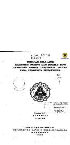 SUKAWATI, - (1993) PERANAN POLA ASUH REJECTING PARENT DAN DOUBLE BIND TERHADAP PROSES TERJADINYA WAHAM PADA PENDERITA SKIZOFRENIA. Other thesis, Prodi Psikologi Unika Soegijapranata.