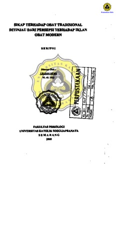 DEWI, LILIANI (2000) SIKAP TERHADAP OBAT TRADISIONAL DITINJAU DARI PERSEPSI TERHADAP IKLAN OBAT MODERN. Other thesis, Prodi Psikologi Unika Soegijapranata Semarang.